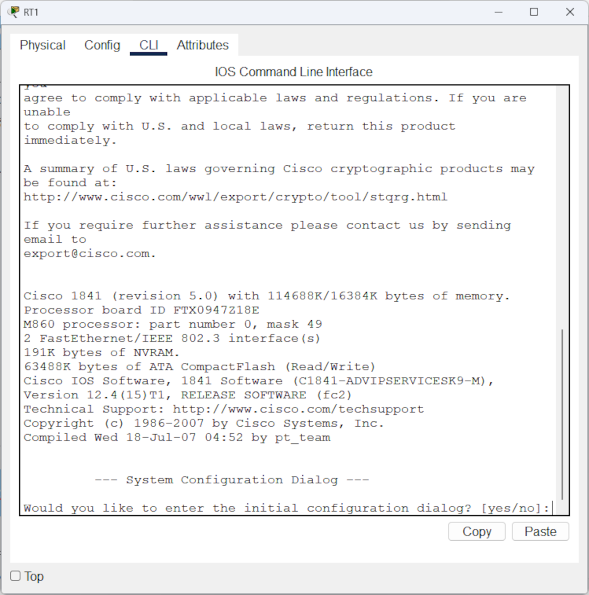 Would you like to enter the initial configuration dialog? [yes/no]: