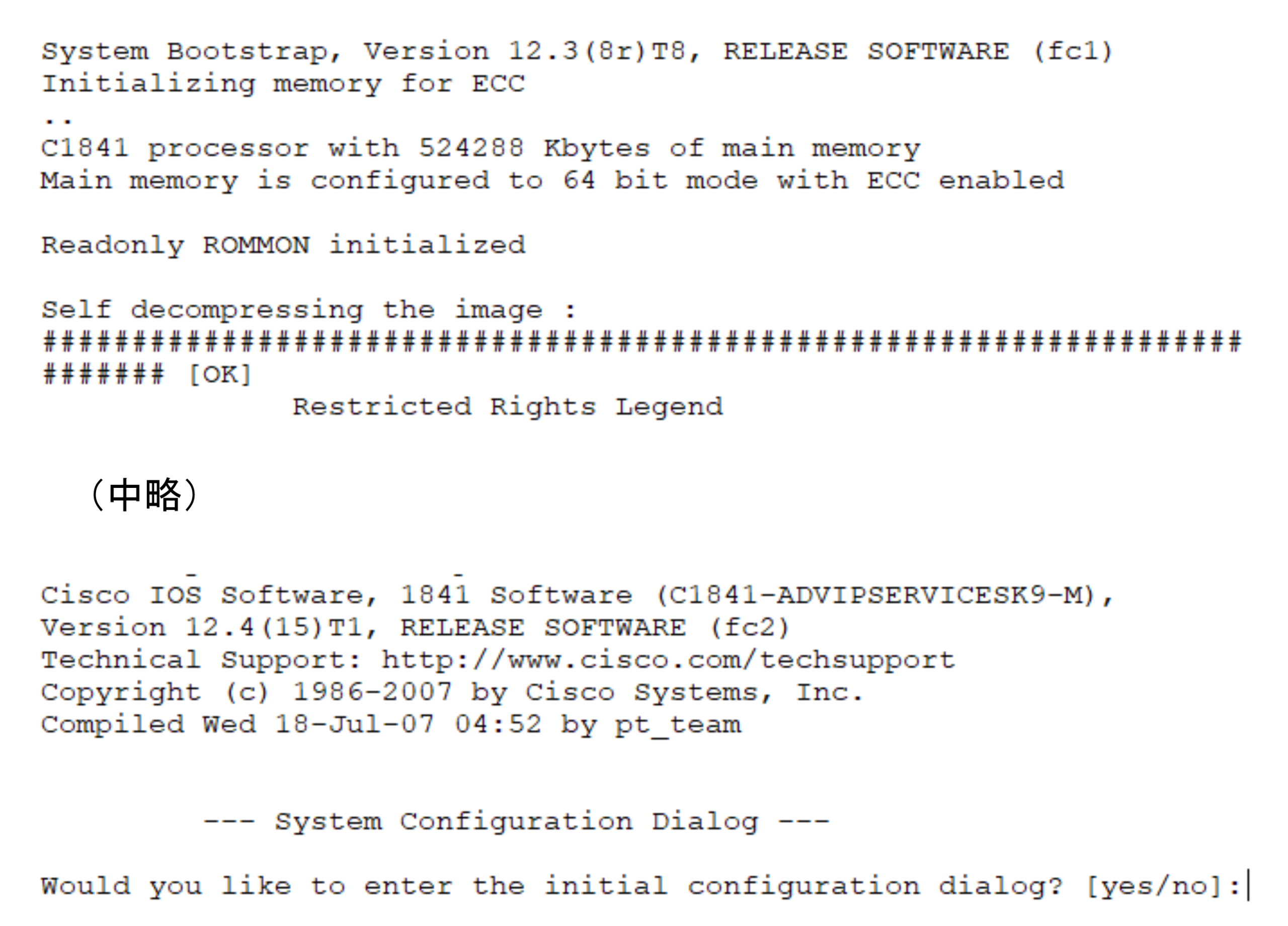 下は、[1841]というルータの起動メッセージです。機種やバージョンによってメッセージの内容は若干違います。