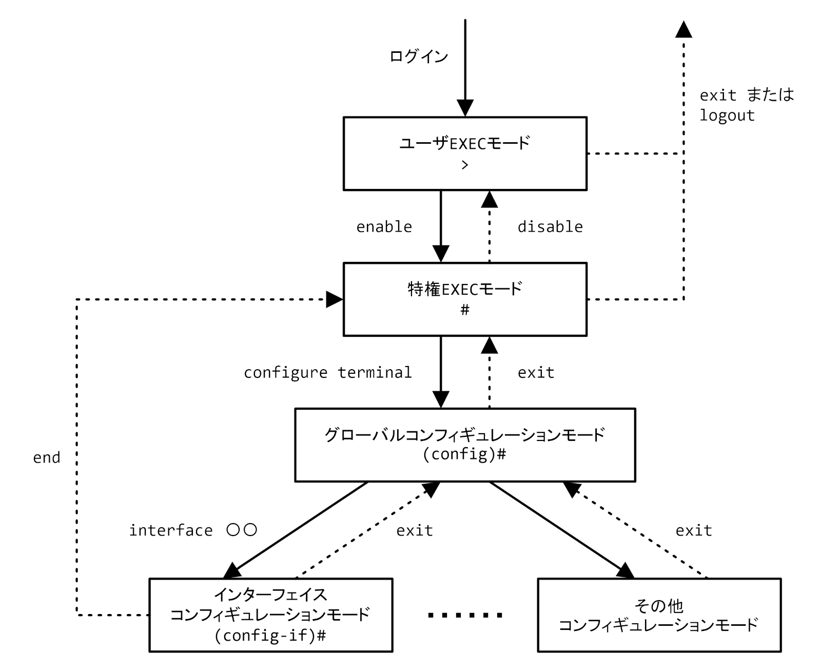 iosには多数の『モード』があり、モードごとに使用可能なコマンドが異なっています。