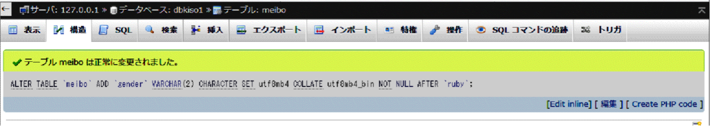 (このALTER TABLEをSQLコマンドとして入力してもテーブルの構造を変化させることが出来ます)
