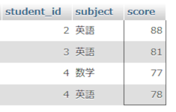 ※phpmyadminでは日本語のカラム名を使うとエラーが表示されないことがあるという不具合があるので`平均点`ではなくaverageとしています