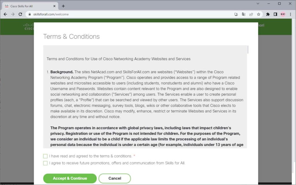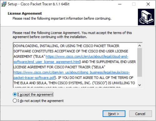 です。この2点を承諾できない場合は Packet Tracer は利用できません。
