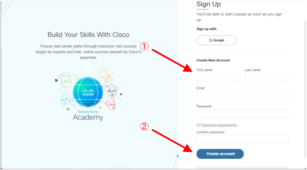 ※形式上Cisco Networking Academy のオンライン教育コースを受講することになりますが、無料の自習コースなので、登録するだけなら費用は発生しません。
