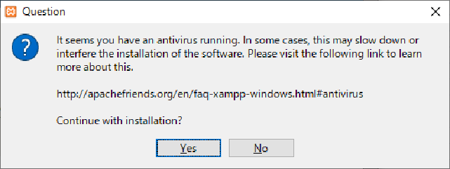 『UAC(ユーザアカウント制御)によってXAMPPのいくつかの機能が制限される可能性があります。そのため、XAMPPを C:\Program Files 以下にインストールするのを避けるか、セットアップ後UACを無効にしてください』