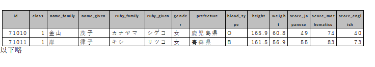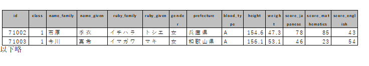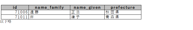 | id | name_family | name_given | ruby_family | ruby_given | gender | prefecture | subject |