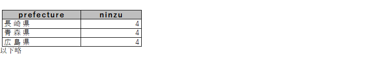 (7) 出身地(prefecture)ごとに人数(カラム名はninzuとすること)を合計し、人数の多い順に出力する