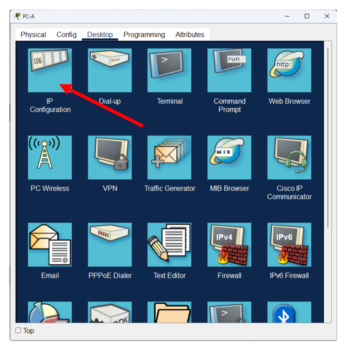 『Desktop』タブ画面ではPCのアプリケーション一覧が表示されるので、『IP Configration』をクリックします。