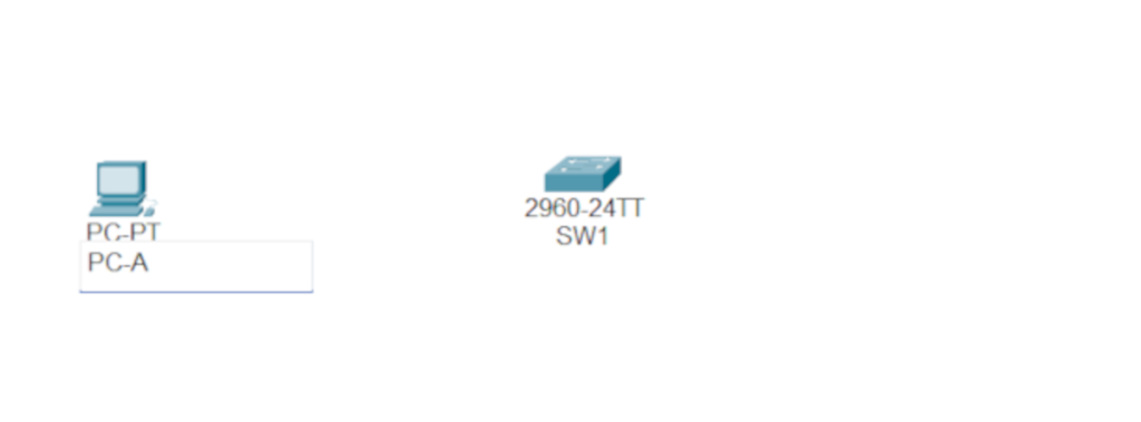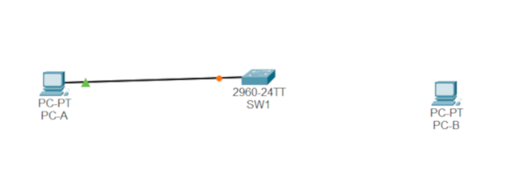 以上の操作を繰り返し、スイッチの右側にもう1台のPCを配置し、名前を『PC-B』とします。