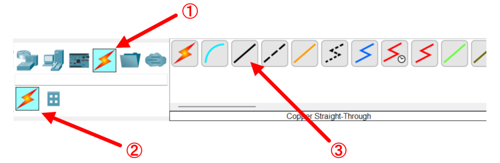 ③デバイス選択ボックスで [Copper Straight Through] (ツイステッドペア・ストレートケーブルのことです)をクリックして選択します。
