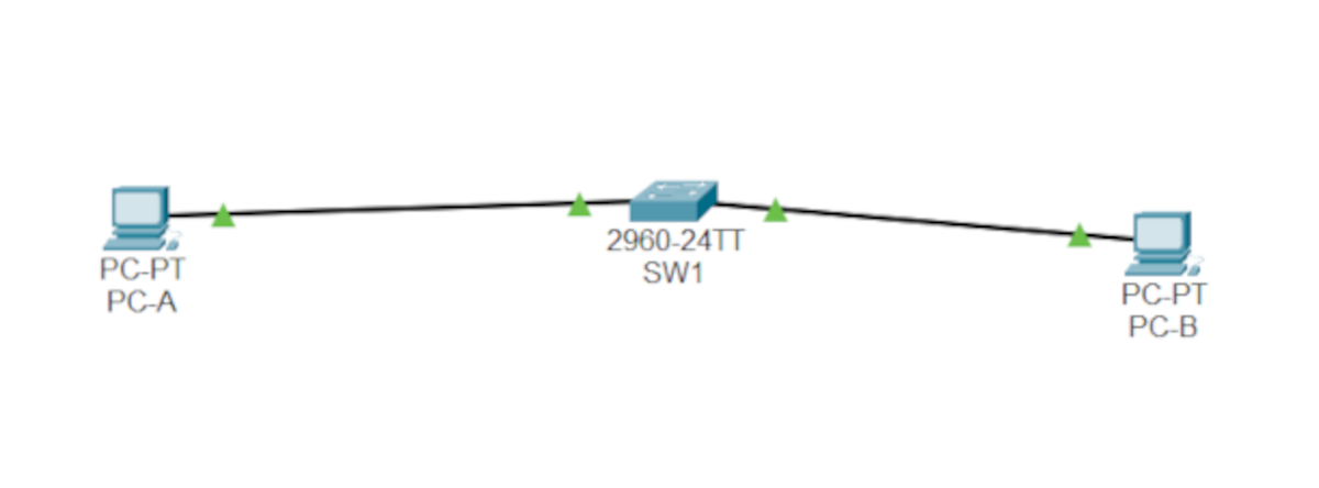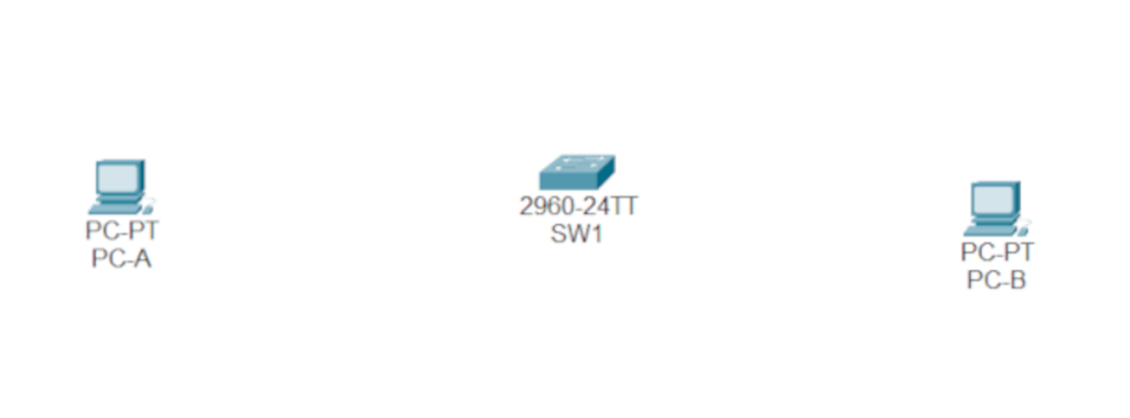 例として、今回は下図のようなごく簡単なネットワークを Packet Tracer 上で作成します。