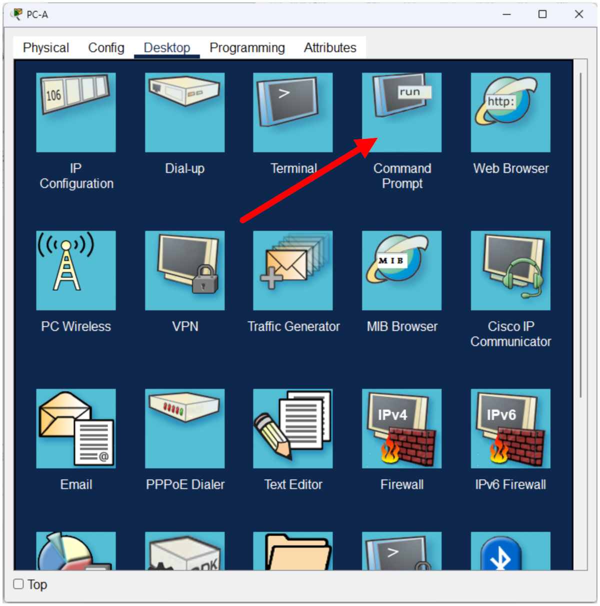 PacketTracerのPCで動作するコマンドプロンプトは、Windowsのコマンドプロンプトとよく似ています。操作感も使用できるコマンドもだいたい同じです。