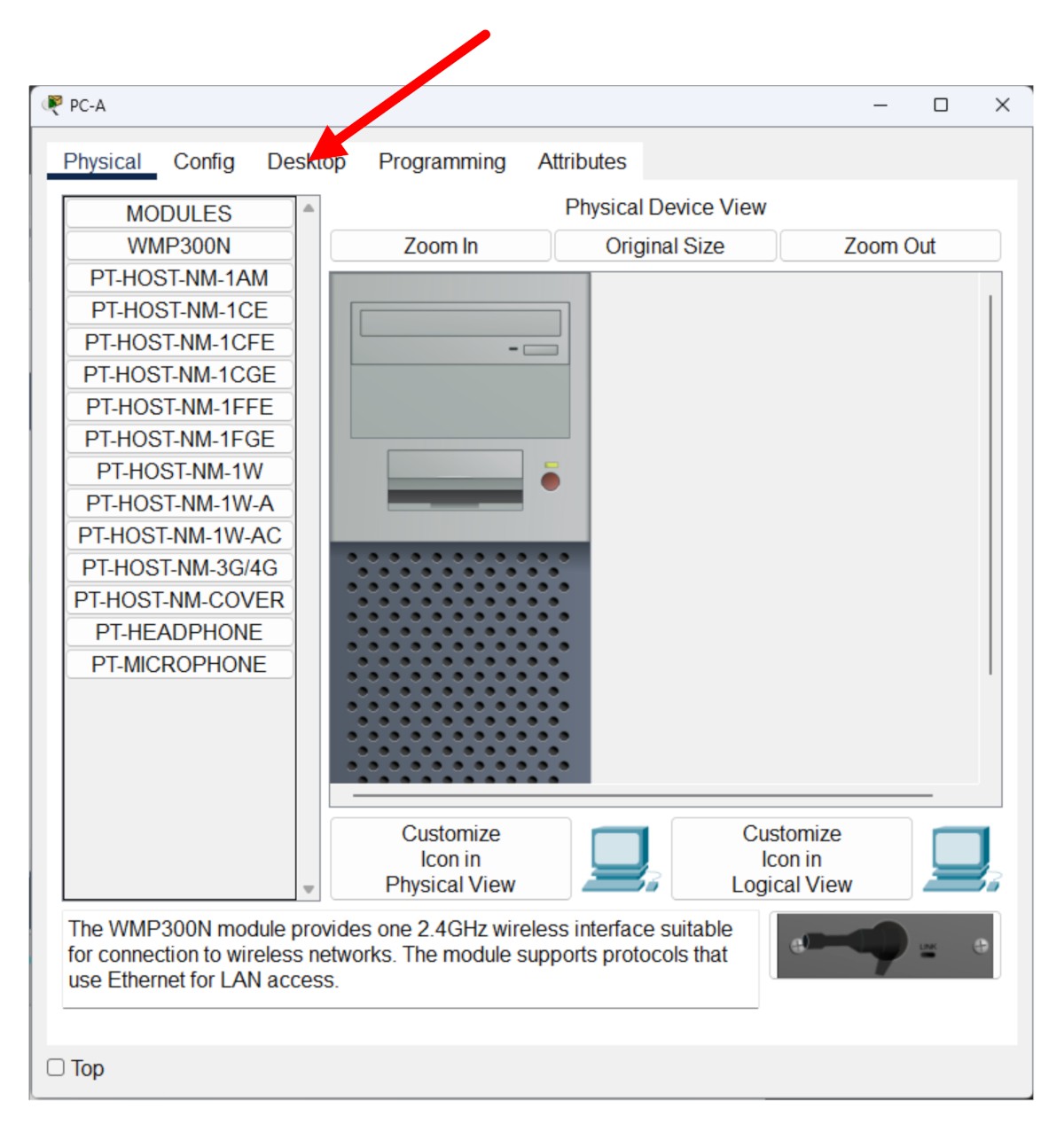 配置したPCには自動的に『PC0』などの名前が付けられていますが、この名前を冒頭のネットワーク図に従って『PC-A』に変更します。