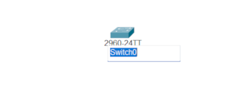 スイッチを配置すると、自動的に『Switch0(0の部分は連番)』という名前が付けられます。この名前をネットワーク図に従って変更してみましょう。